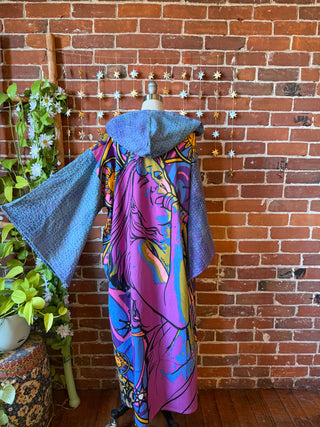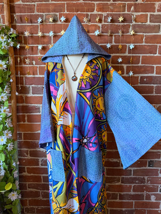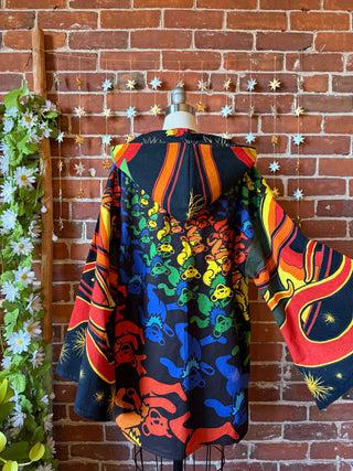 Grateful Dead Inspired Moon + Stars Celestial Tapestry Bell Sleeve Hooded Kimono