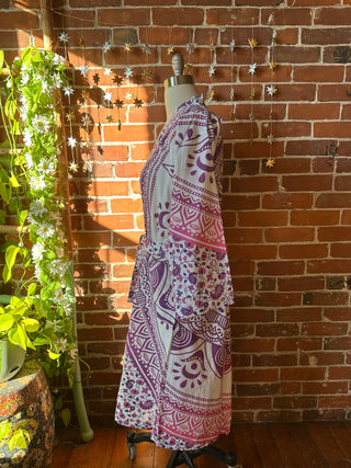 Purple Pink Blue Mandala Long Tapestry Robe Kimono w/ Pockets + Belt - Fair Trade Made