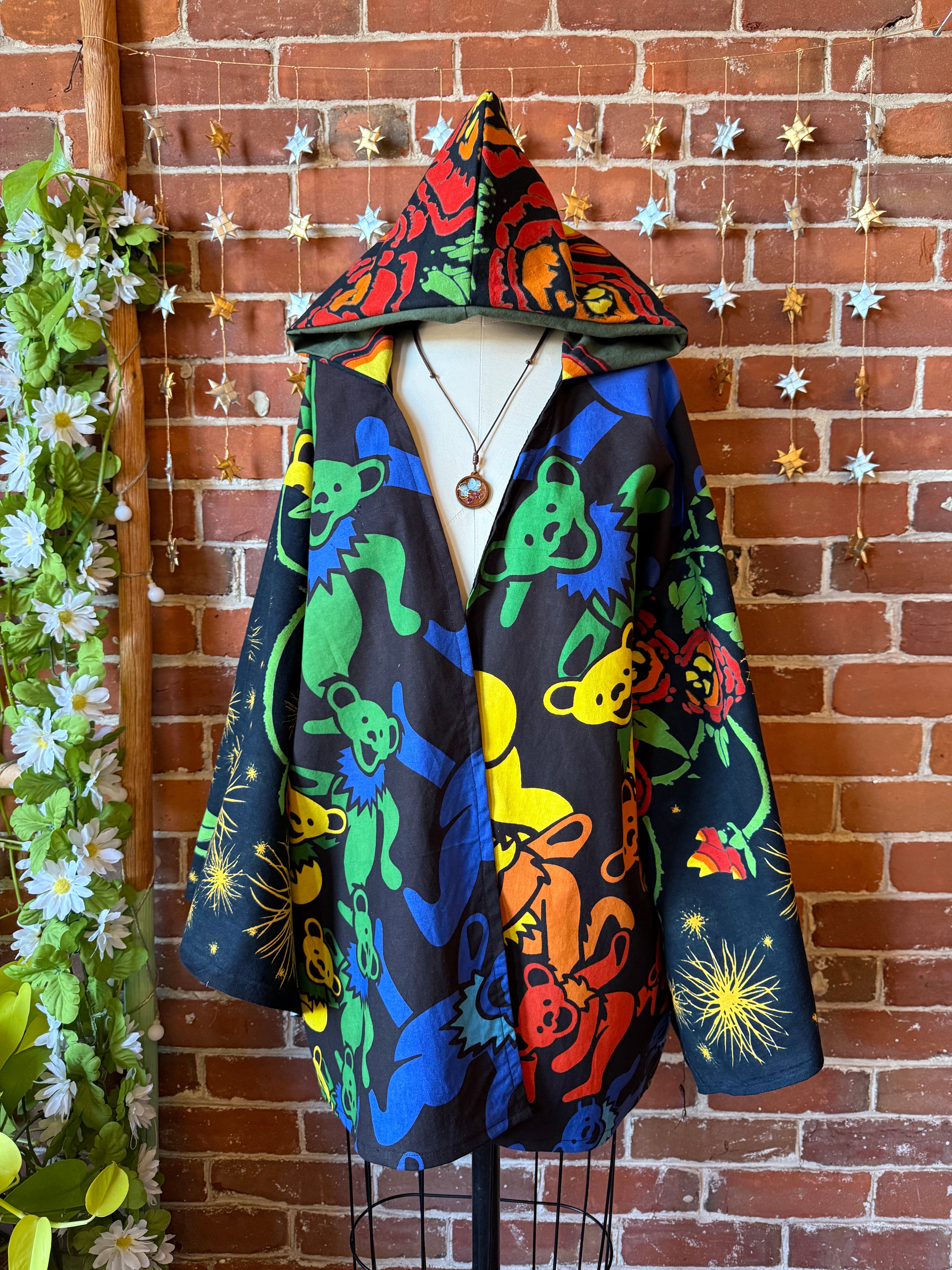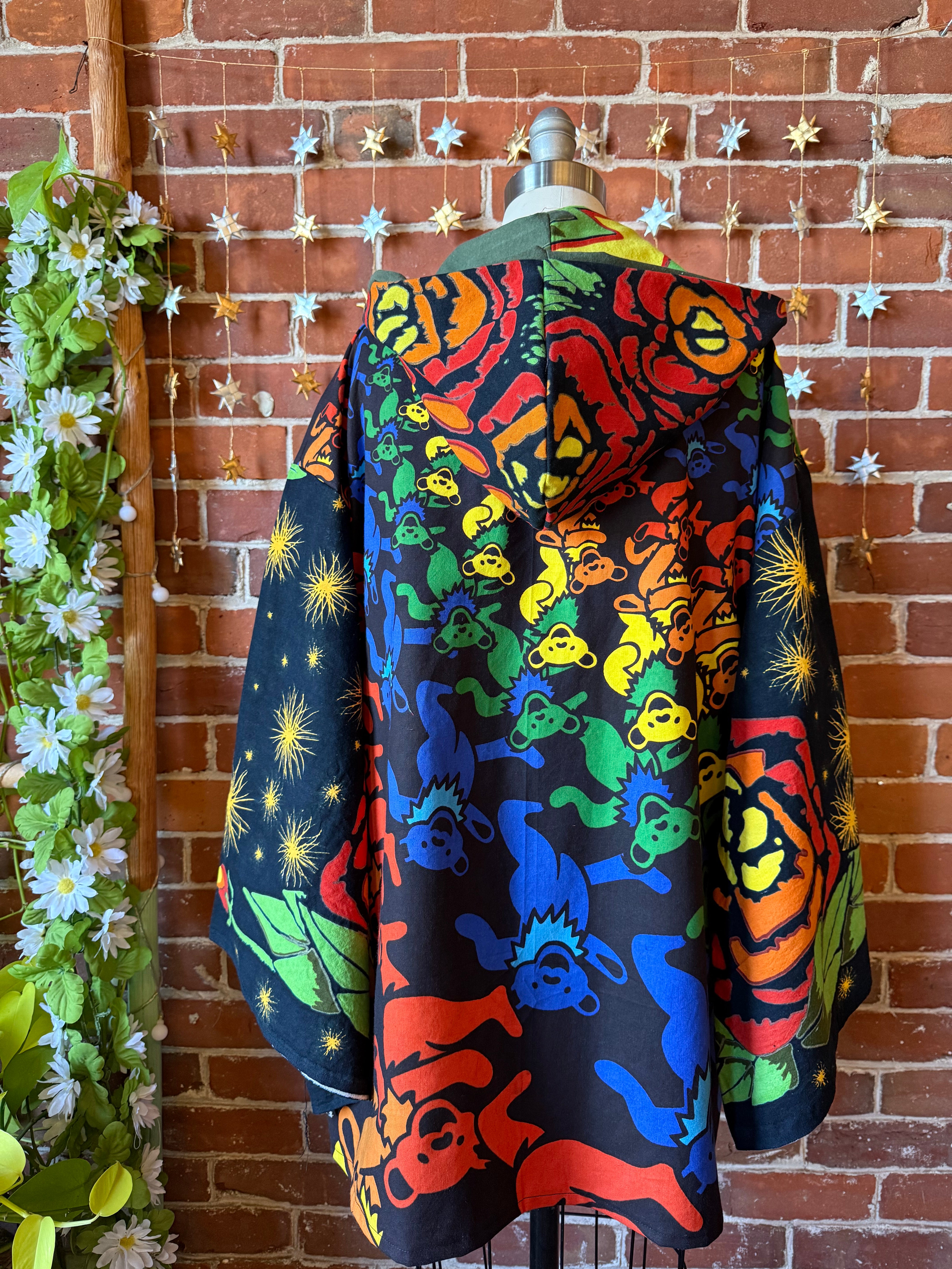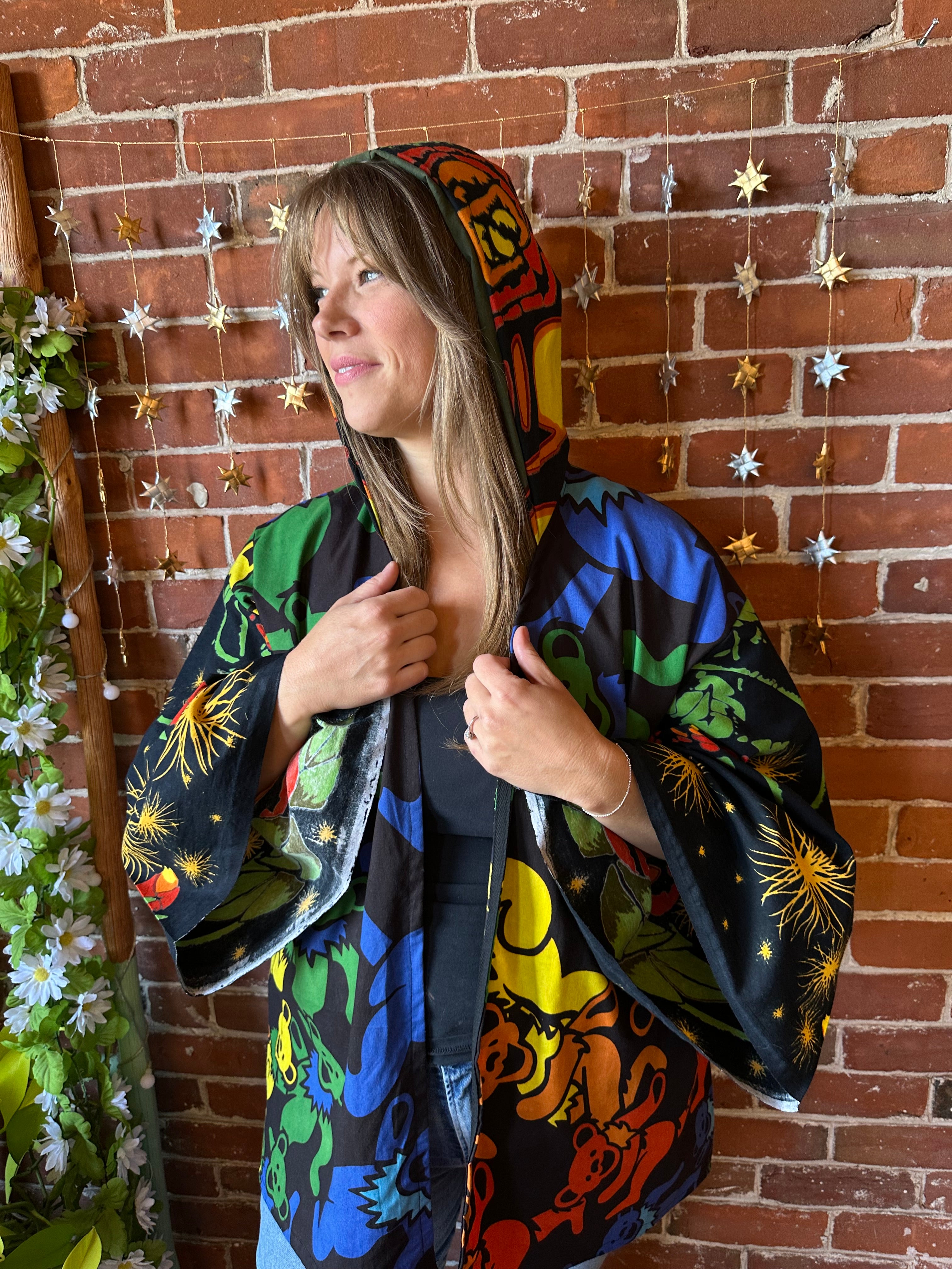 OOAK Autumn Collection - Upcycled Grateful Dead Inspired Mix Fabric Bell Sleeve Robe