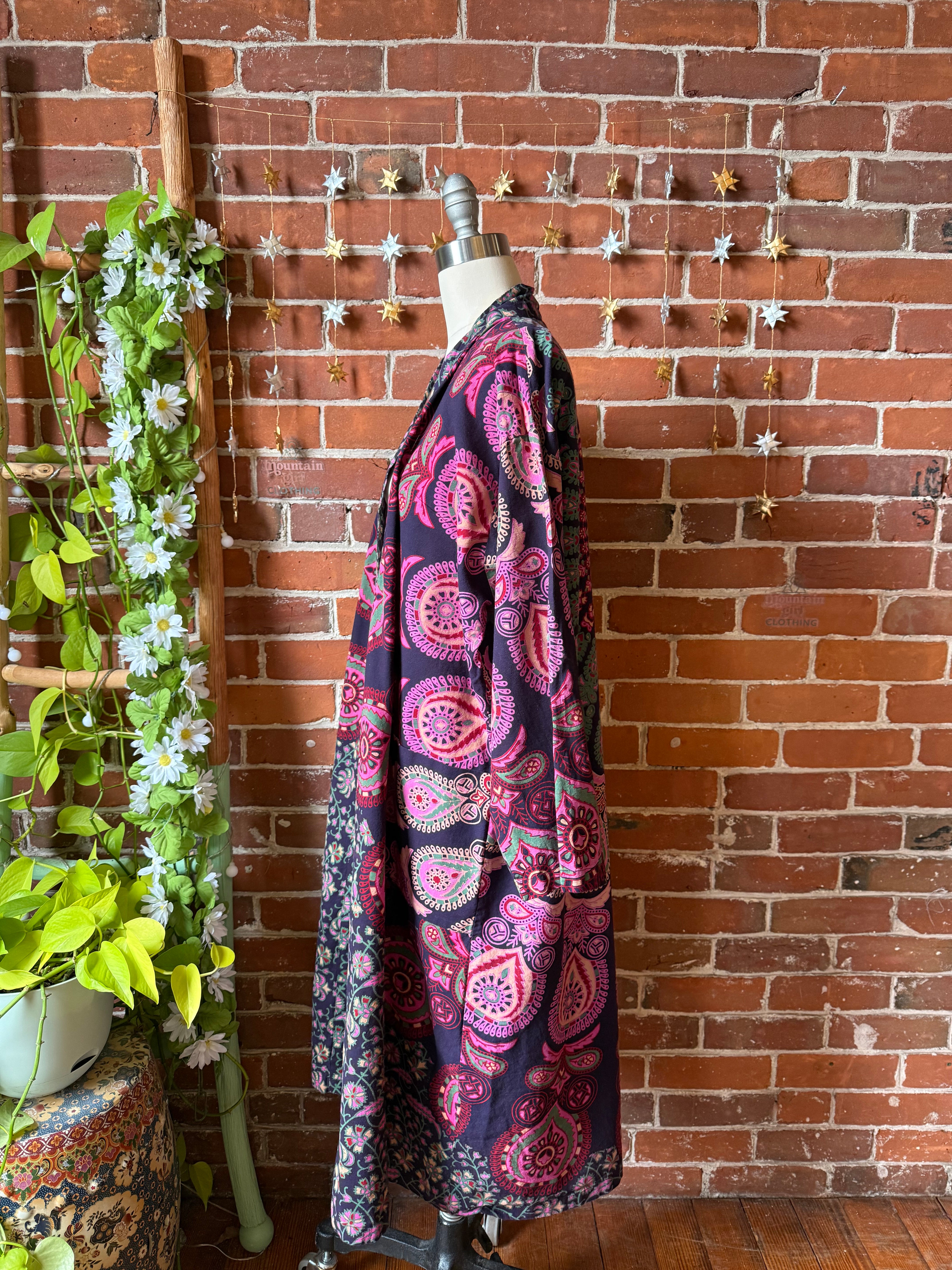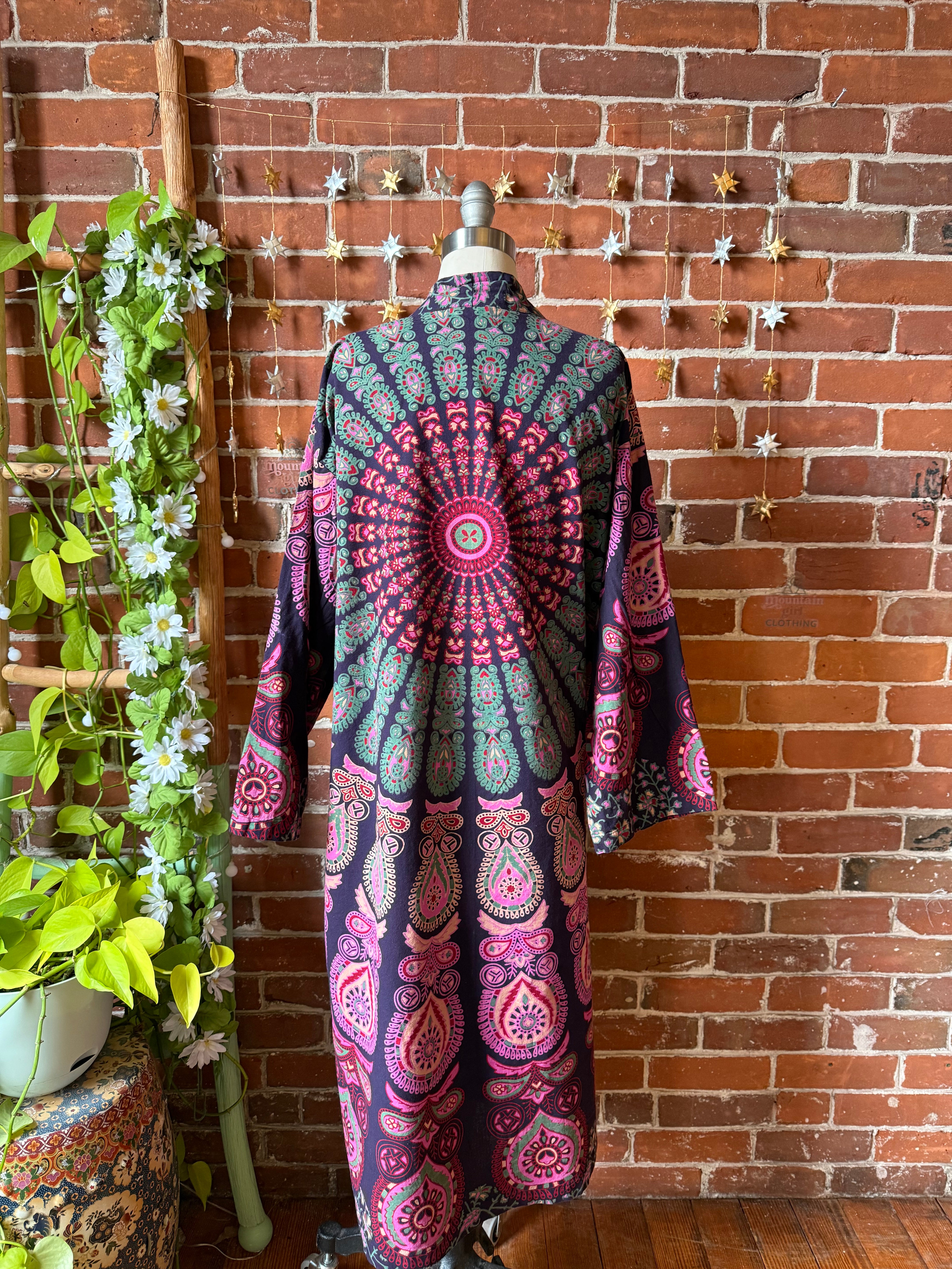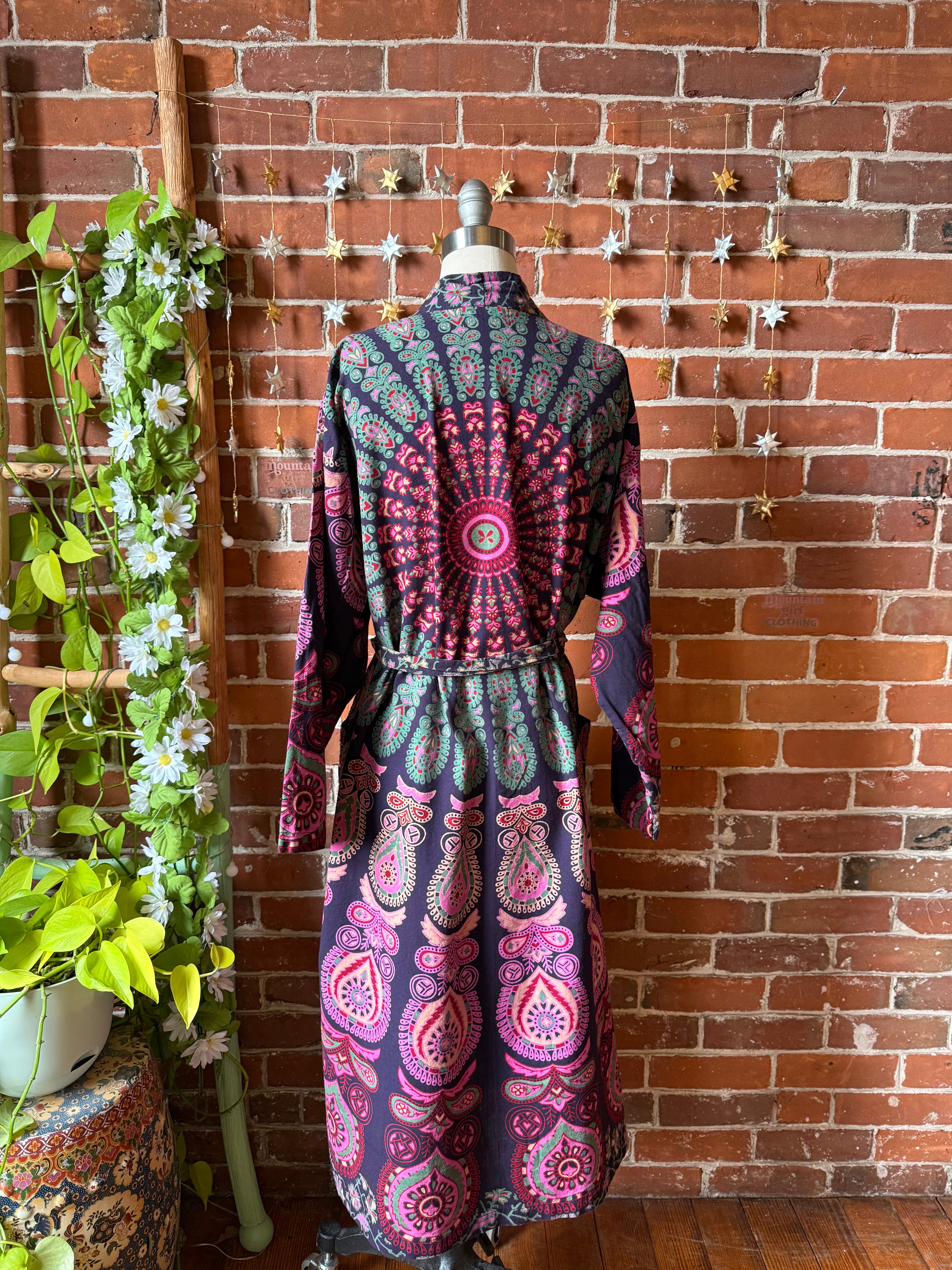Purple Mandala Long Tapestry Robe Kimono w/ Pockets + Belt - Fair Trade Made