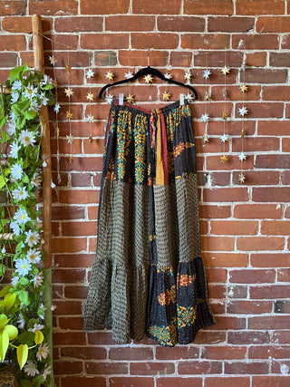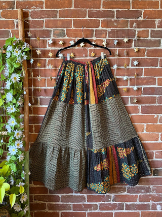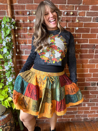 100% Cotton Boho Festival Patchwork Mini Skirt - Earth Tones