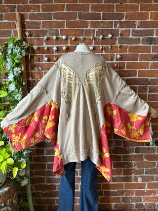 OOAK Autumn Collection- Birdsong Butterfly Wing Style Kantha Poncho Sweatshirt