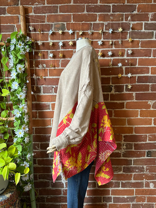 OOAK Autumn Collection- Birdsong Patchwork Wing Style Kantha Poncho Sweatshirt
