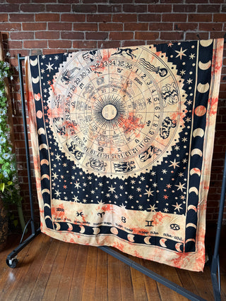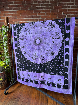 100% Cotton Zodiac Tie Dye Mandala Tapestry / Wall Hanging / Bedspread