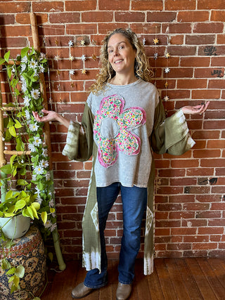 OOAK Autumn Collection - Upcycled Flower Patchwork Hi Lo Tie Dye Poncho Top 🌼