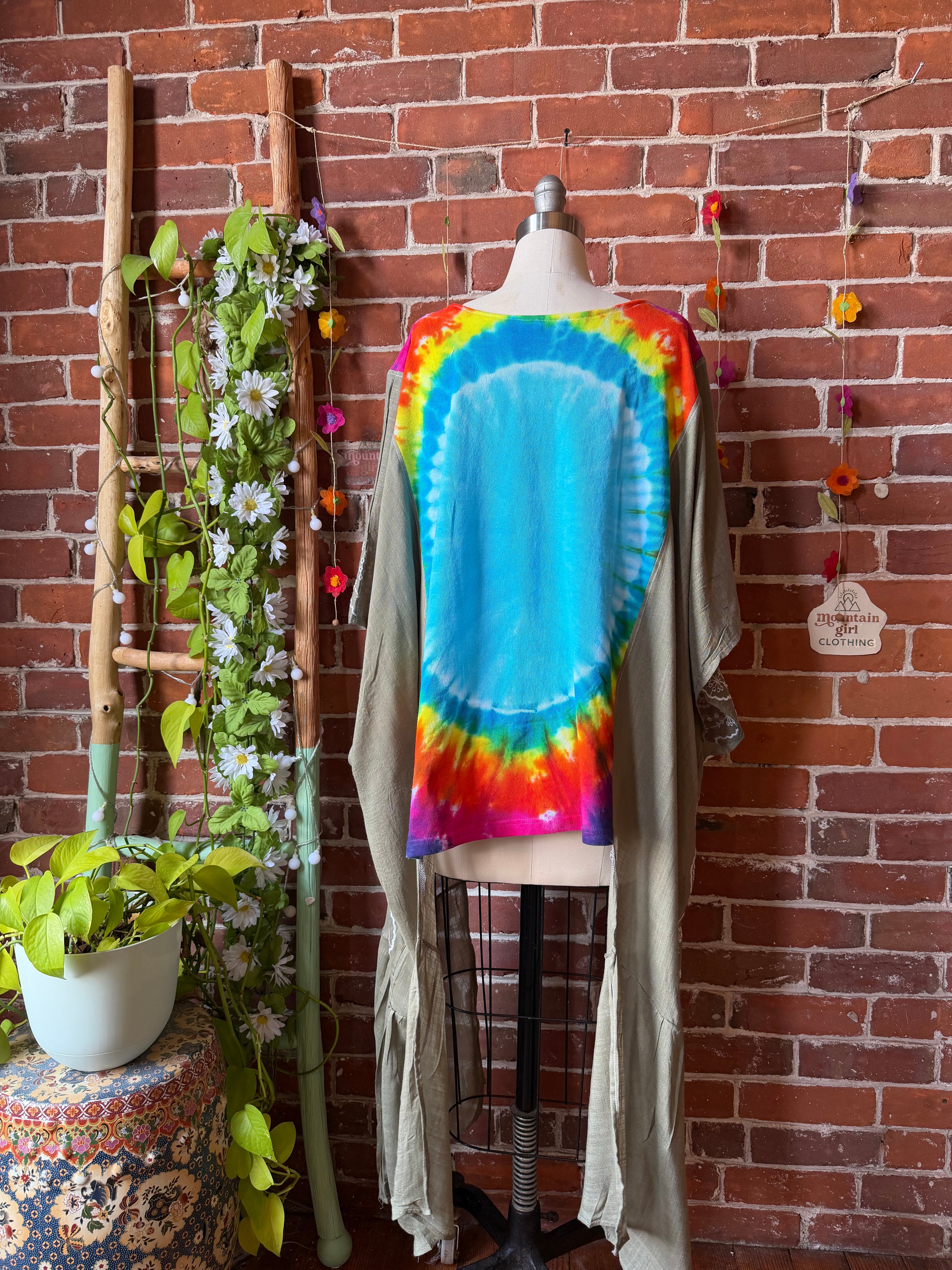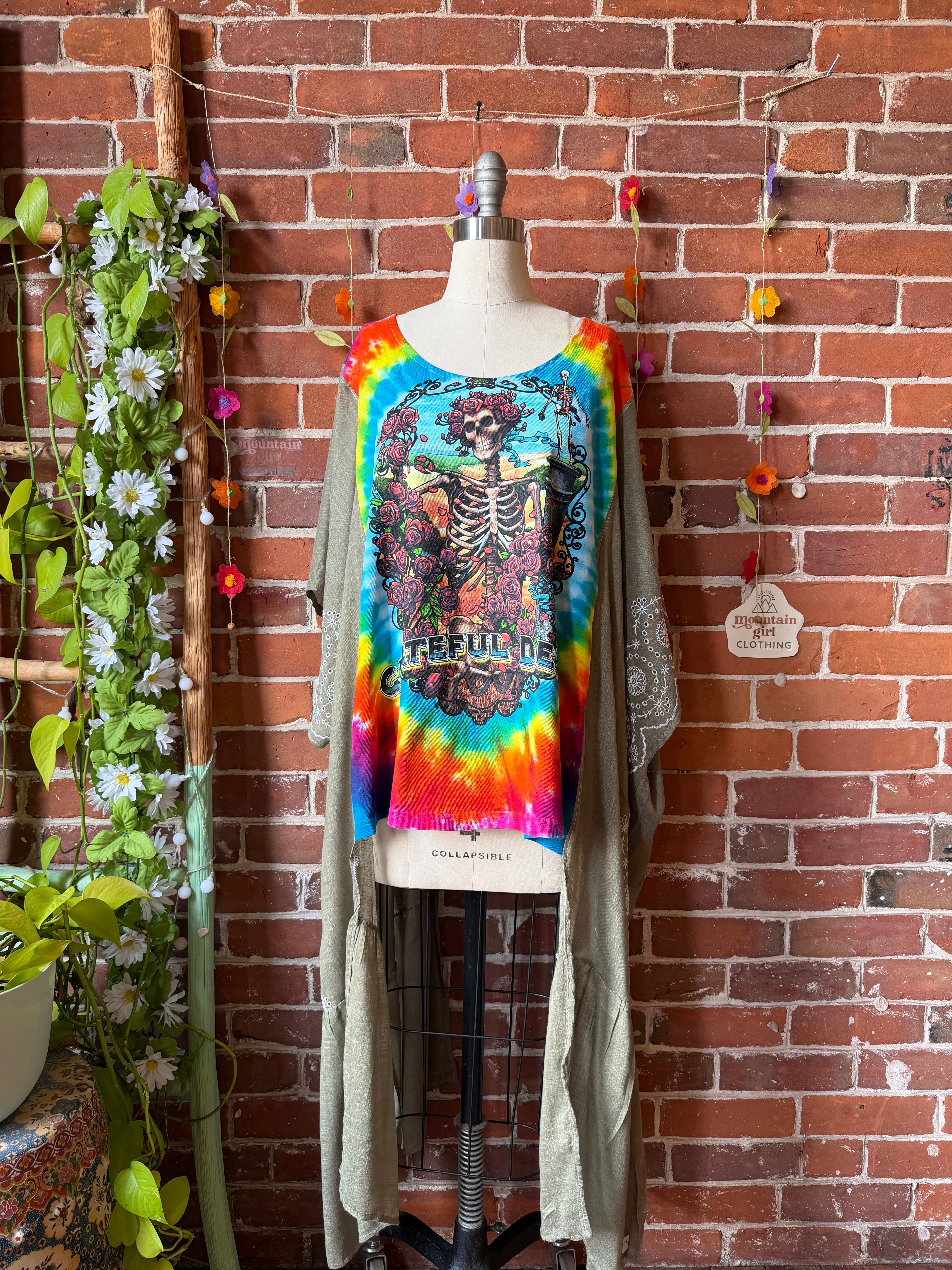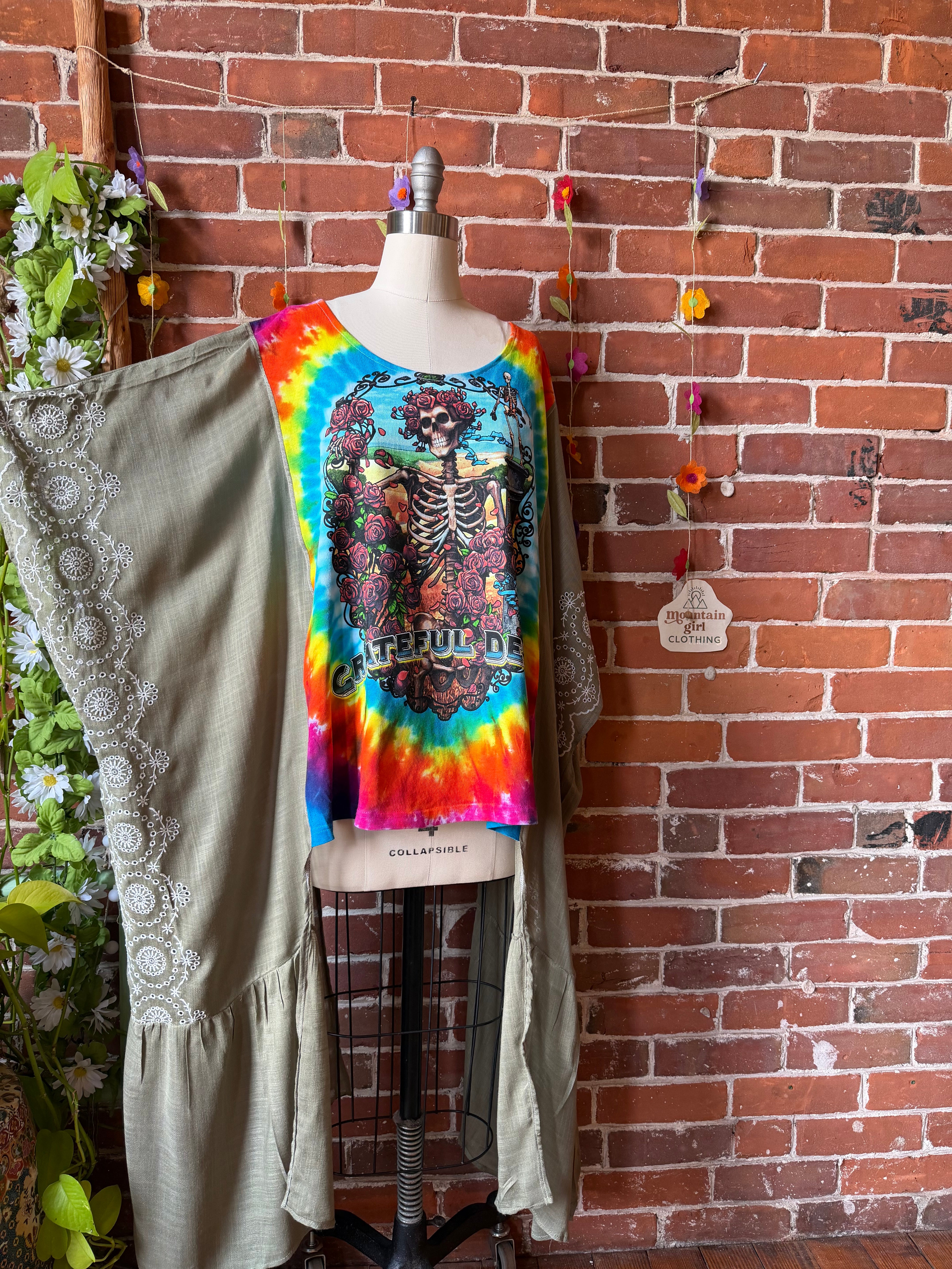 Grateful Dead Inspired Tie Dye Sage Embroidered Hi Lo Top