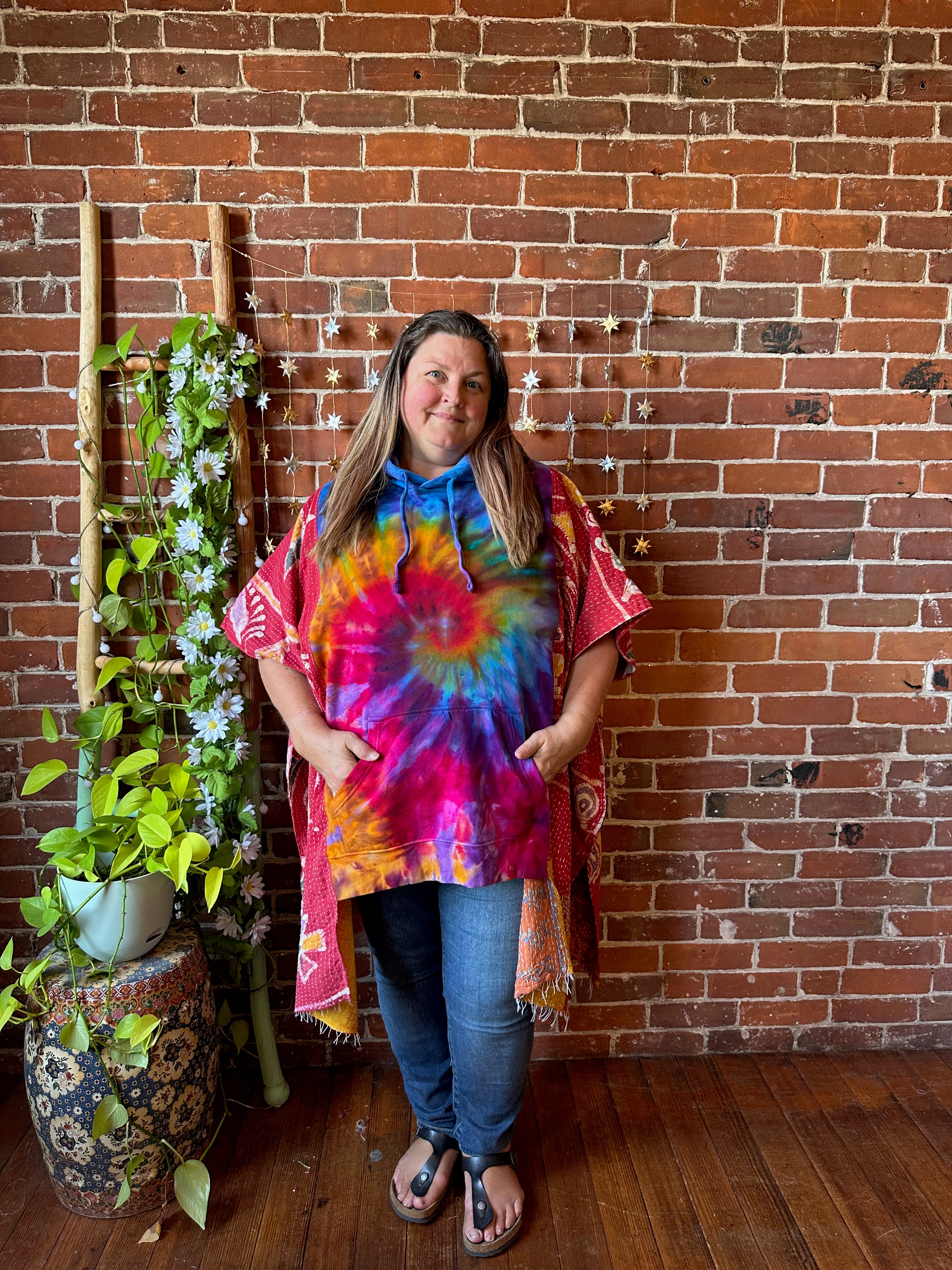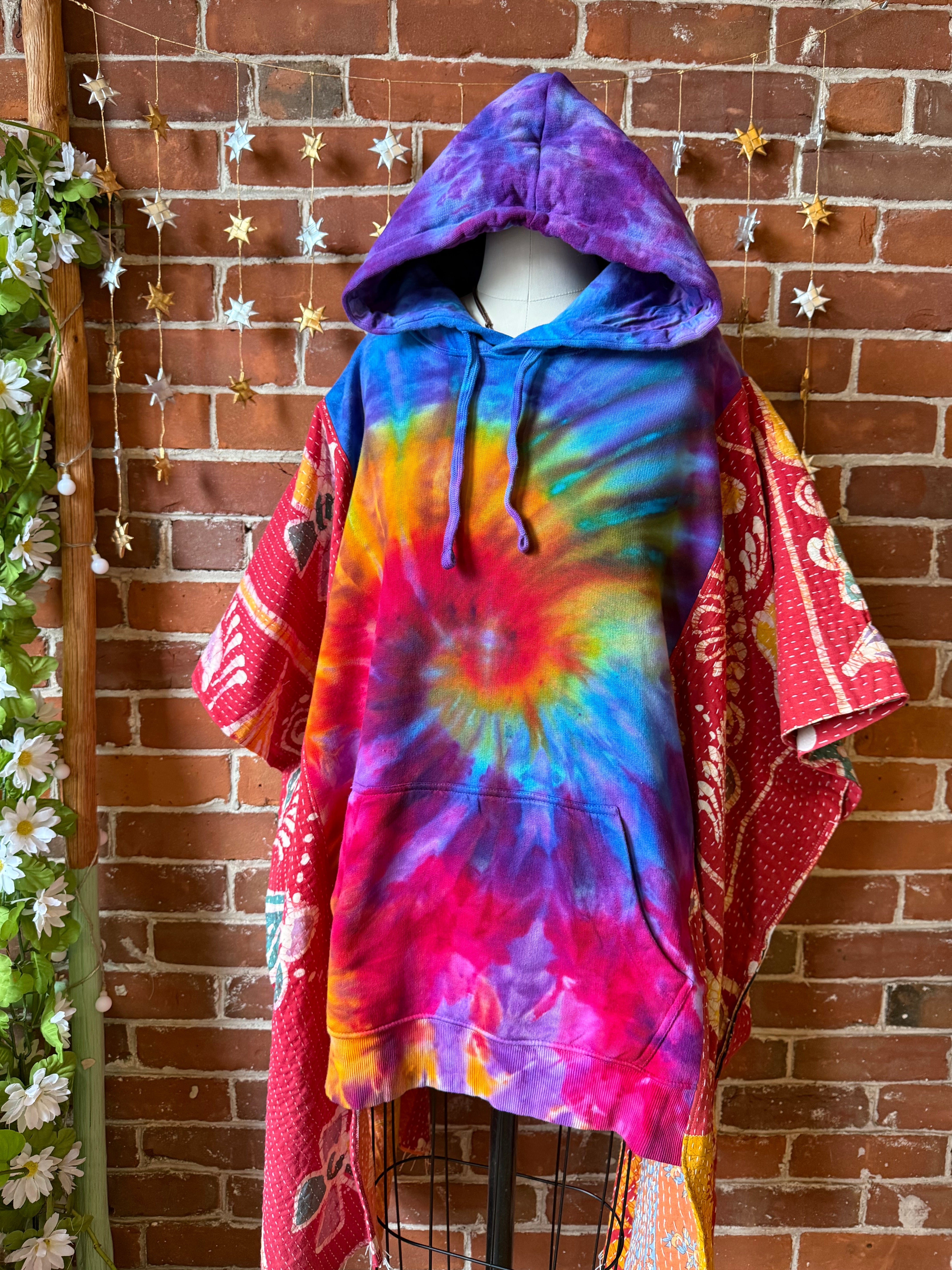 Soul Shine Maine X Mountain Girl Collab OOAK Upcycled Tie Dye Kantha Hi Lo Hoodie