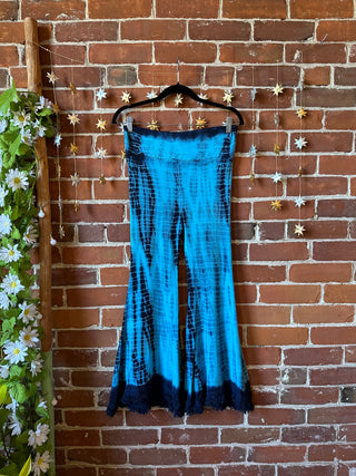 Sale - Tie Dye Bell Bottom Cropped Pants with Fringe Size Small