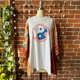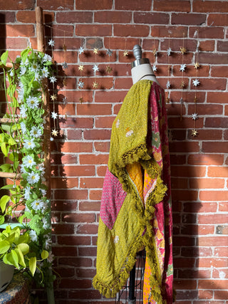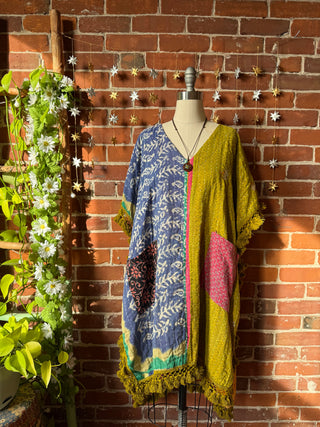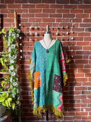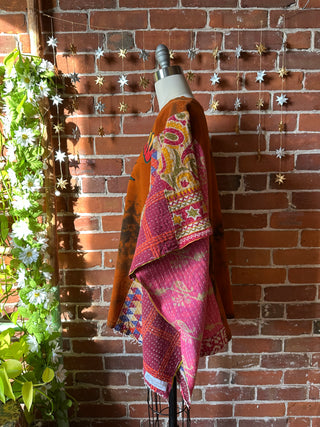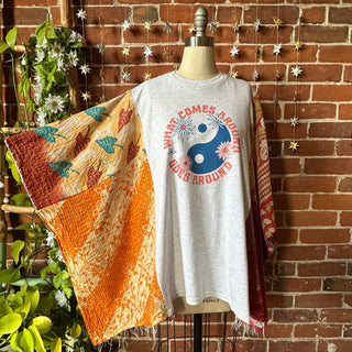 OOAK Winter Collection- Upcycled Stevie Silver Sprints Inspired Kantha Poncho Tee