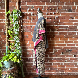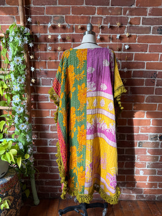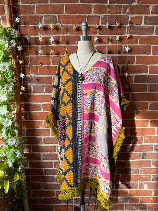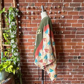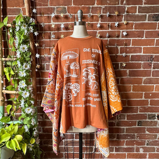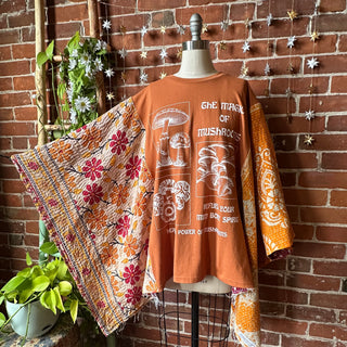 OOAK Winter Collection- Upcycled Magic Of Mushrooms Inspired Kantha Poncho Tee