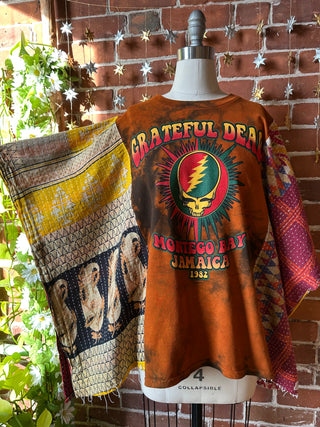 OOAK Winter Collection- Upcycled Grateful Dead Inspired Tie Dye Kantha Poncho Top/Tee