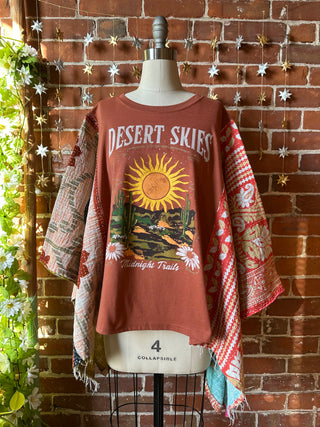 OOAK Winter Collection- Upcycled Chris Stapleton Inspired Cropped Kantha Hi Lo Poncho Tee