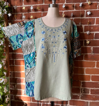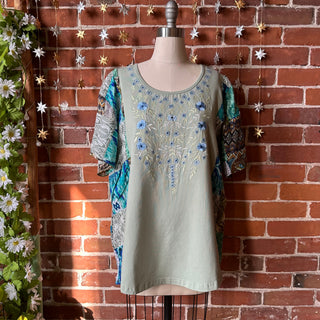OOAK Winter Collection- Size Medium Upcycled Patchwork Flower Embroidered Hybrid Top