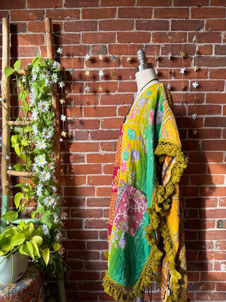OOAK Winter Collection - Grateful Dead Inspired Boho Kantha Hi Lo Poncho Top