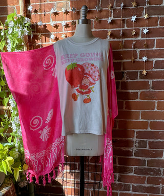 OOAK Winter Collection- Upcycled Strawberry Shortcake Hi Lo Tie Dye Poncho Top