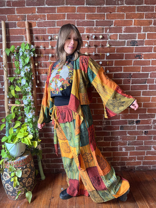 Organic Cotton Earth Print Patchwork Cropped Bell Sleeve Wrap Top